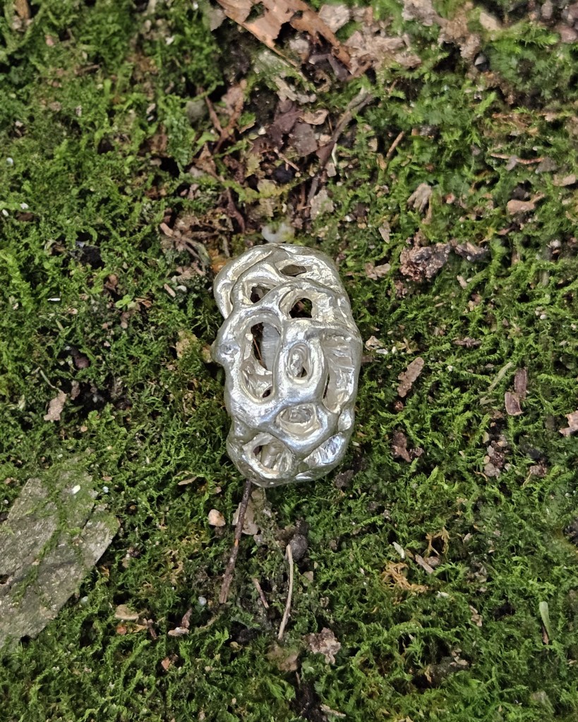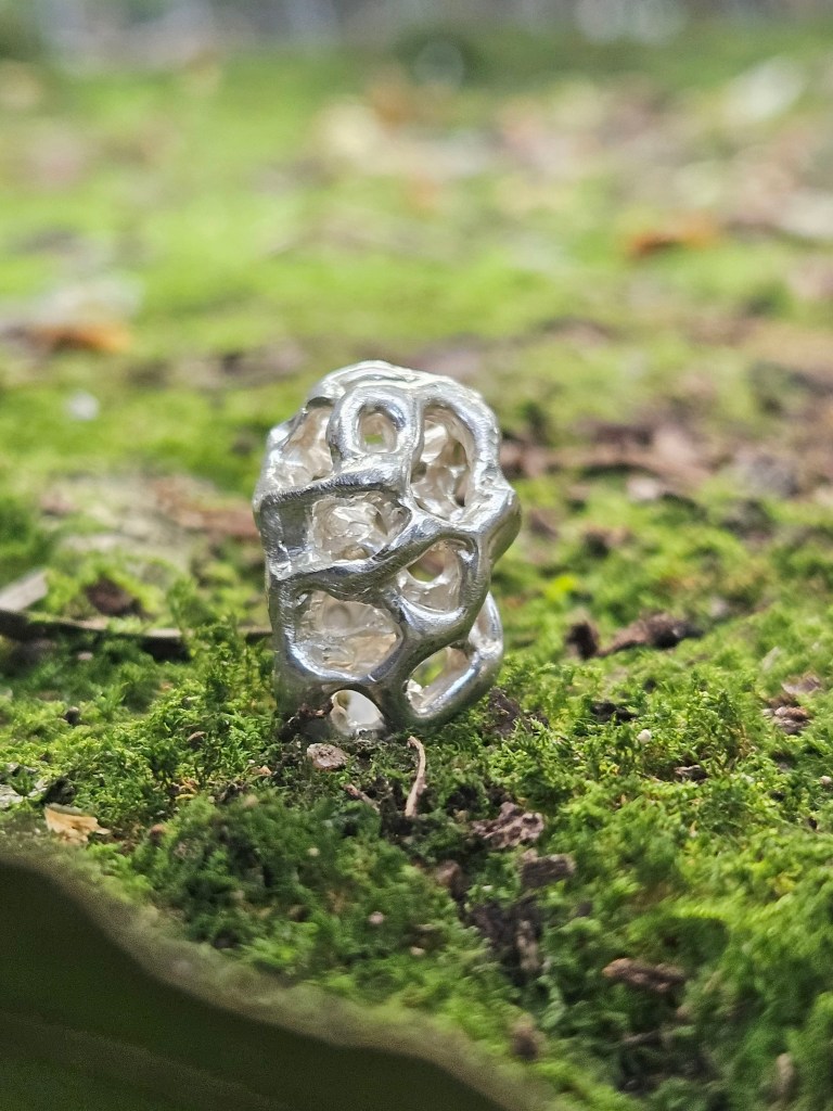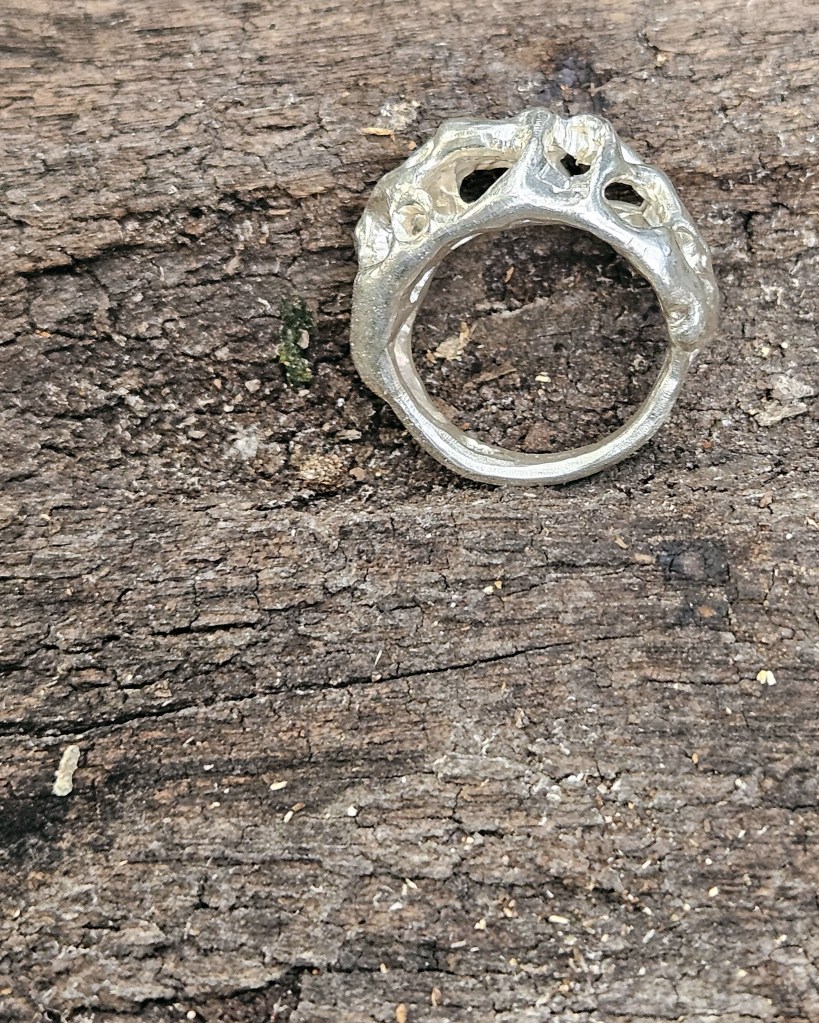 Hand carved from wax and then cast in sterling silver. Hollow in the centre, perfect for little reef fish to swim in and out of. A ring of coral around your finger.